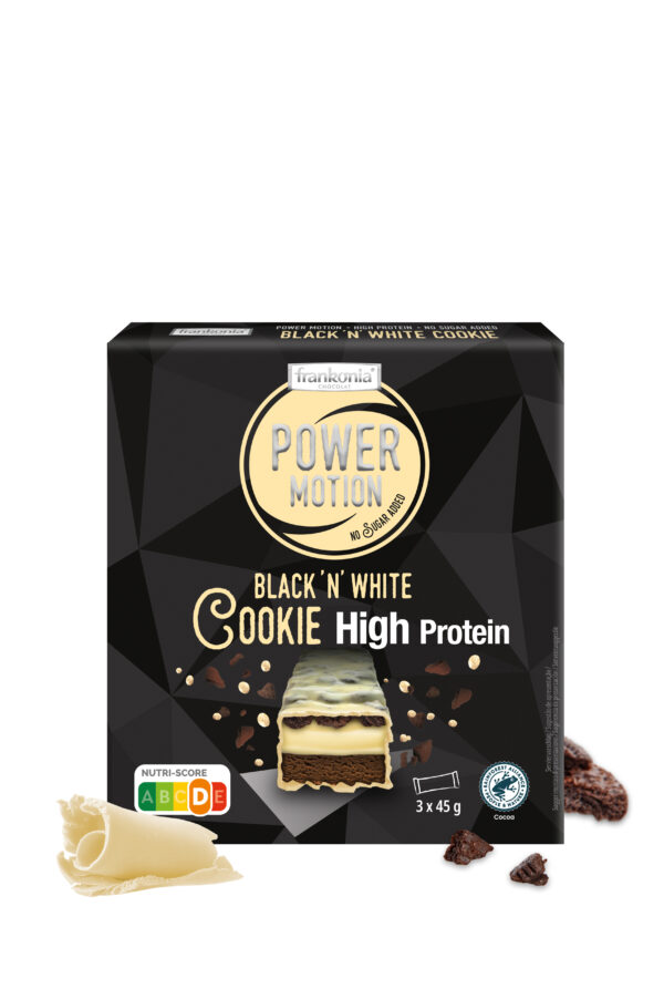 Zutaten: Milcheiweiß, Kakao-Mürbegebäckstückchen (12%) (Süßungsmittel: Maltit, Erythrit, Isomalt; Kartoffelstärke, Maismehl, Butter (Milch), fettarmes Kakaopulver, Reismehl, Butterreinfett (Milch), modifizierte Kartoffelstärke, Tapiokastärke, Oligofruktose, Salz, natürliches Aroma, Bourbon Vanille Extrakt, Backtriebmittel: Natriumhydrogencarbonat), Süßungsmittel: Maltit; Butterreinfett (Milch), Feuchthaltemittel: Glycerin; Kakaobutter, Gelatine (Rind), Magermilchpulver, Wasser, fettarmes Kakaopulver (3,4%), Sonnenblumenöl, Salz, Emulgator: Lecithine (Soja); Aromen (Milch), BSüßungsmittel: Aspartam, Acesulfam K. Enthält eine Phenylalaninquelle.